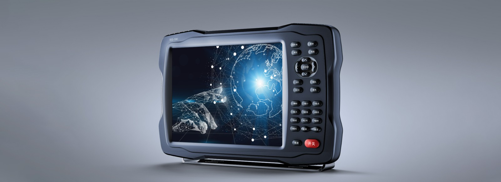 一款专为航海场景设计的卫星定位导航产品,是航海场景的极端需求与工业设备的美学表达的精准适配 形态服务于防摔、防抖,材质服务于防盐雾、防水,细节服务于强光可视、戴手套操作
