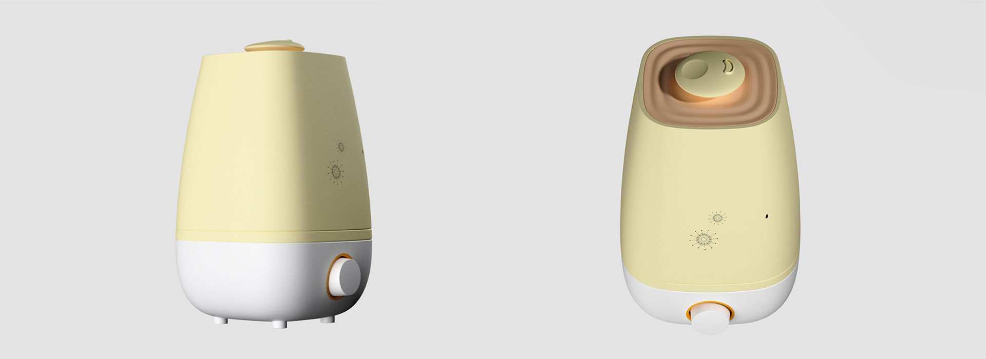 一款通过物理方式,增加室内空气湿度的加湿器 简约治愈的家居美学,整体呈圆润的流线型轮廓,弱化了硬质棱角,带来亲近感与柔和感。顶部的盖体设计或小巧圆润,既满足功能性,又让造型更具记忆点。