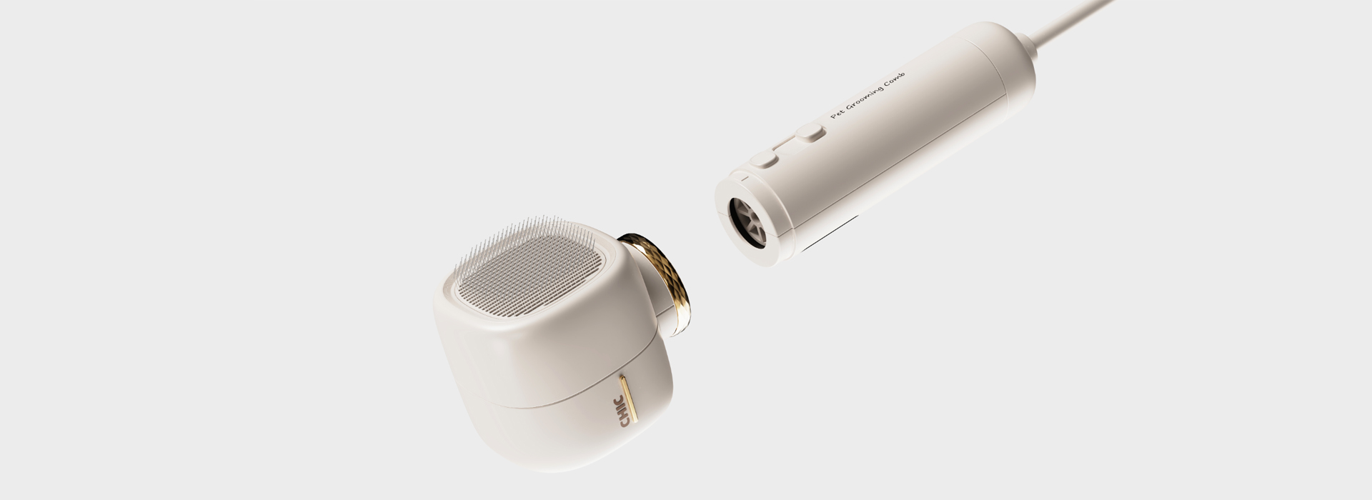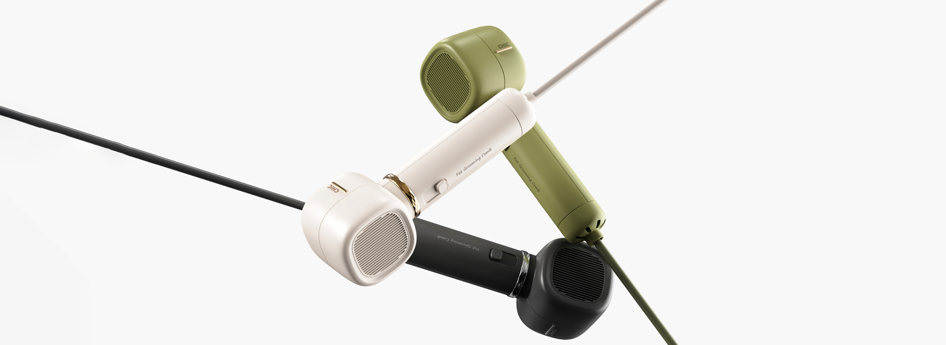 一款智能吹风机产品,宠物清洗后,对于毛发的吹干,方便使用,精致轻奢美学与宠物护理功能的创新融合 轻奢中见实用,精致中含温度
