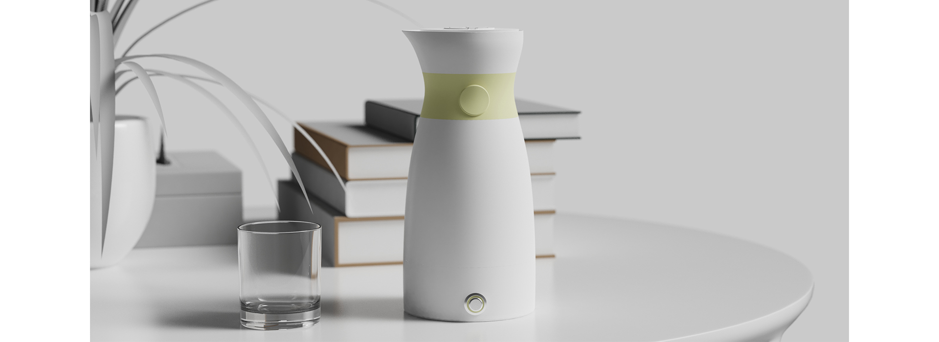 一款集成了智能控温、数据监测与交互功能的保温壶 产品整体呈流线型的壶身轮廓,顶部 “收窄式” 的设计既贴合人机工程学,又赋予产品灵动的视觉节奏;中间的 “收腰式” 结构是设计的核心亮点 ,既强化了造型的记忆点,又自然地将功能按键整合其中,让 “形式” 与 “功能” 高度统一,打破了传统保温壶的呆板感