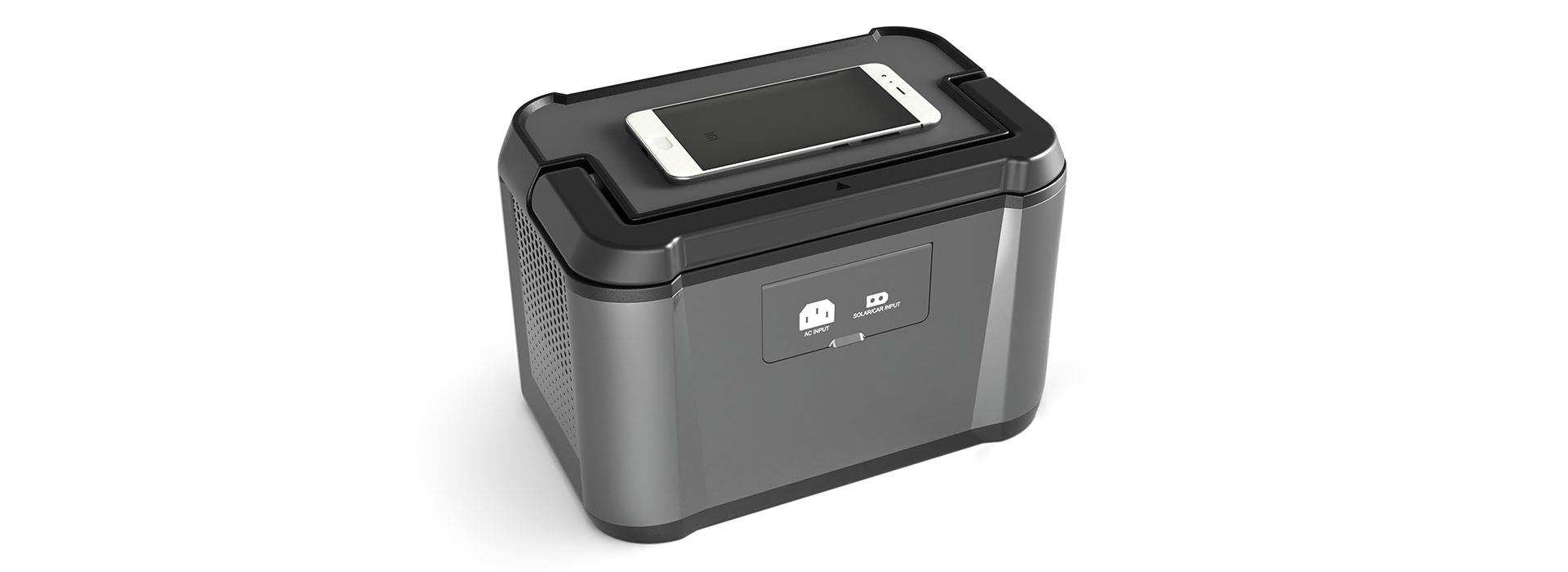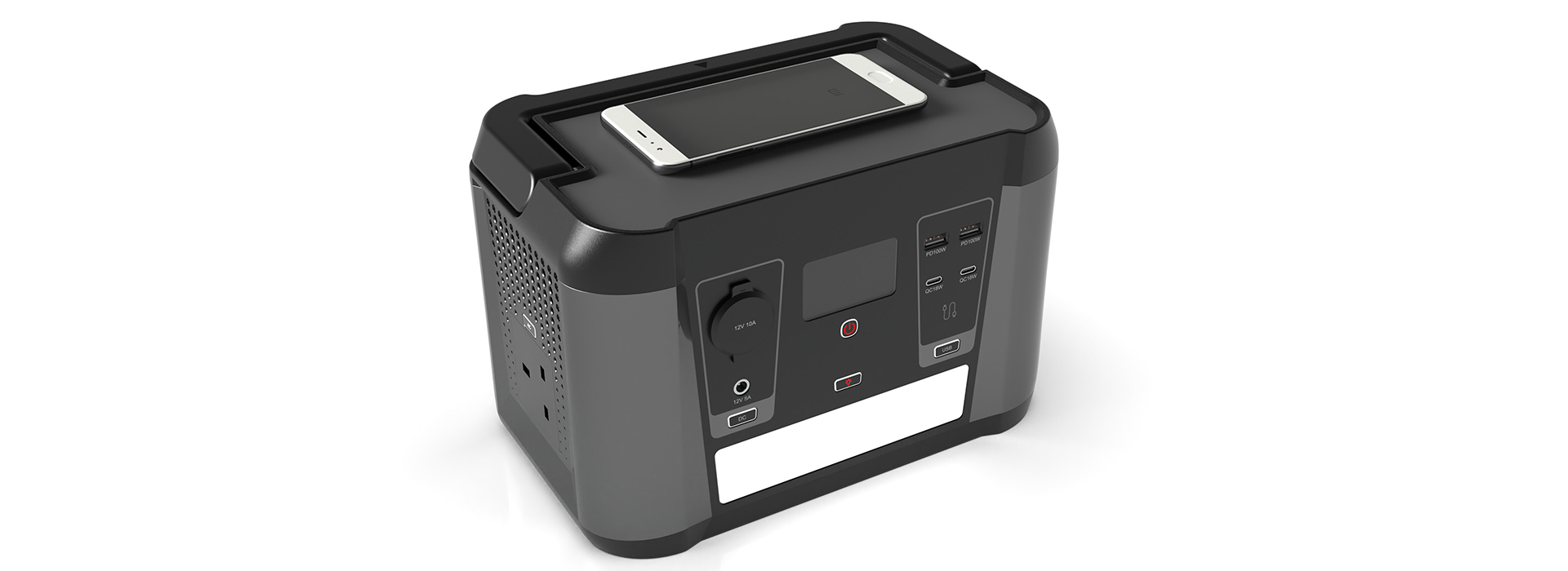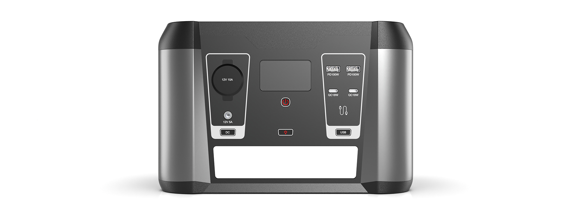 一款大容量、可移动的户外电源。 深灰、哑光黑的低饱和工业配色,深色既耐脏又能弱化阳光直射下的反光干扰。以白色标识做功能区分,视觉清晰且不冗余,契合户外高效识别的需求。
