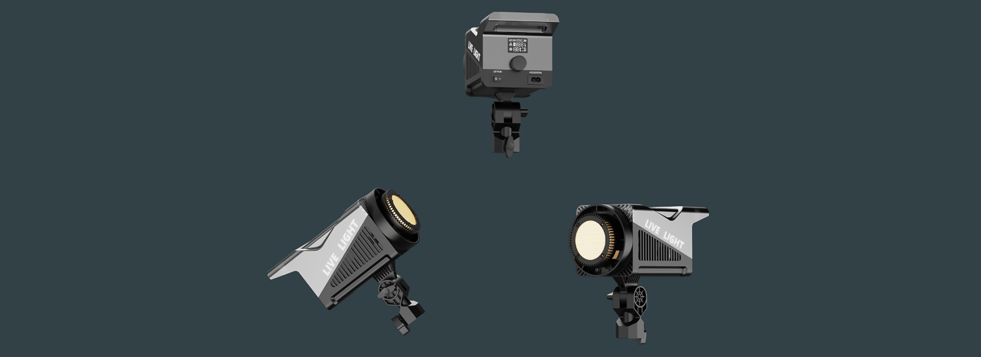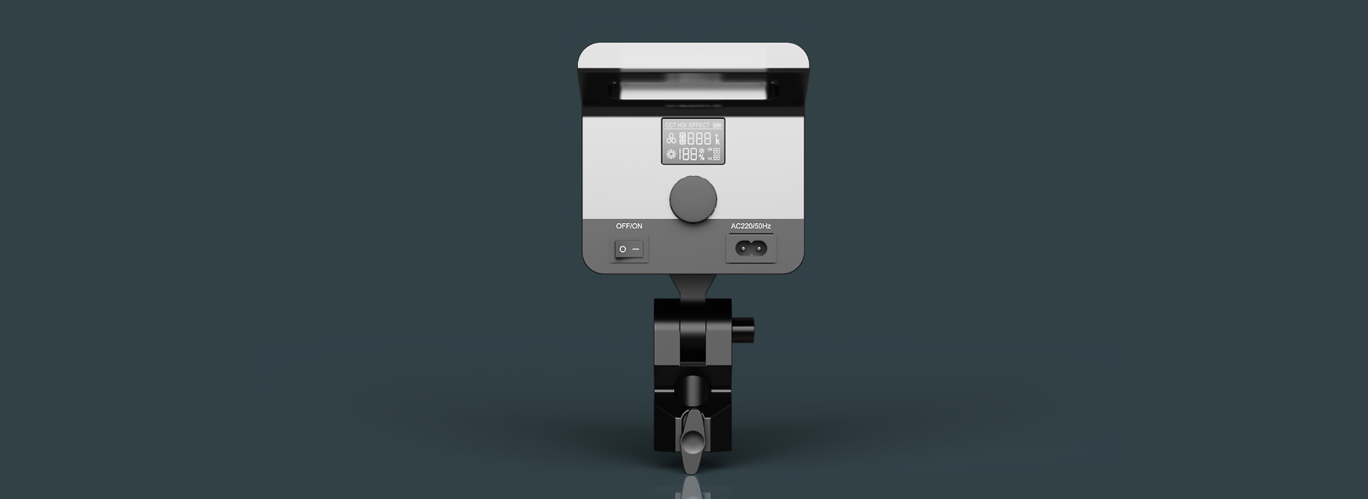 一款能切换两种色温光源的直播补光灯具 产品整体呈现简约科技风,既适配直播、摄影等创作场景的专业属性,也通过紧凑造型与配色凸显便携、易用的特点