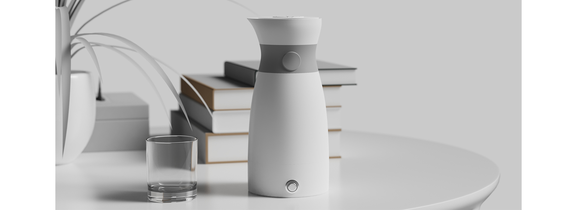 一款集成了智能控温、数据监测与交互功能的保温壶 产品整体呈流线型的壶身轮廓,顶部 “收窄式” 的设计既贴合人机工程学,又赋予产品灵动的视觉节奏;中间的 “收腰式” 结构是设计的核心亮点 ,既强化了造型的记忆点,又自然地将功能按键整合其中,让 “形式” 与 “功能” 高度统一,打破了传统保温壶的呆板感